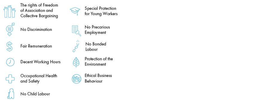 In order for a factory to get SA8000 certification, it must meet all the requirements pertaining to child labour, forced labour, health & safety, freedom of association and right to collective bargaining, discrimination, disciplinary practices, working hours, remuneration and management system.